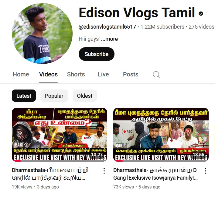 Edison Vlogs engaged in reckless sensationalism by portraying themselves as heroic investigators uncovering a “D-Gang” operating within Dharmasthala.