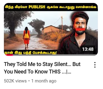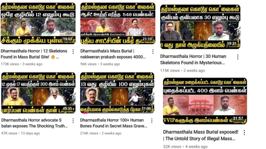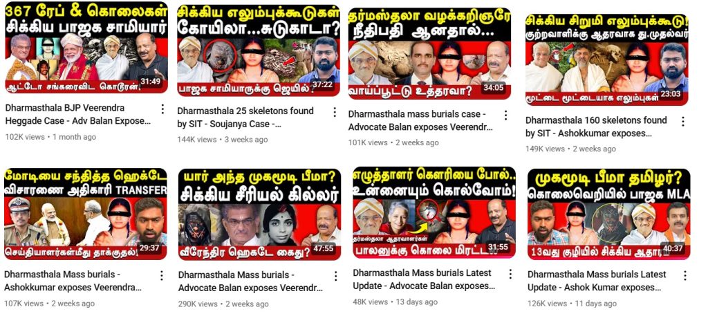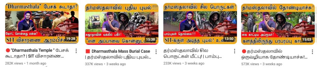 Overall, the entire set of YouTubers in Tamil Nadu, used the unverified claims made by the masked man as gospel truth, tarnished the image of Hindu institutions, made outlandish claims – be it the “gory details”, the numbers of allegedly dead/missing women, and what not. These videos were made purely for driving engagement and monetization.