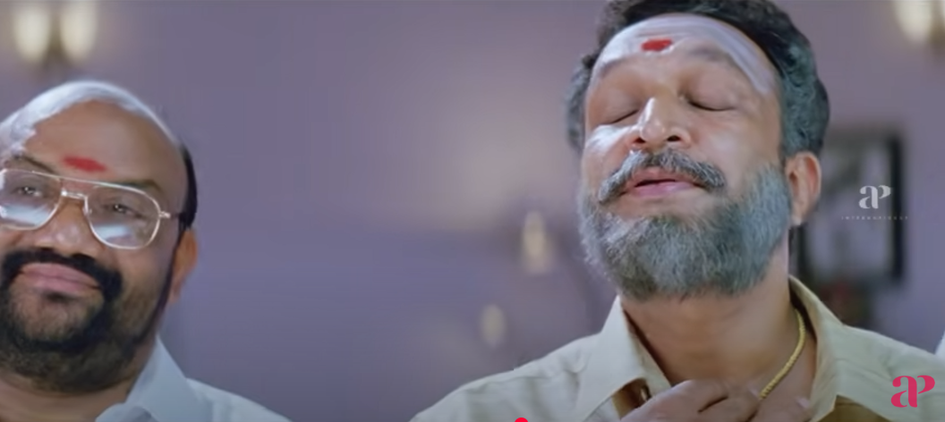 The film’s antagonist, who hides a murder and turns into a criminal, is named “Suyambulingam”—a classic Shaivite name (referring to Lord Shiva as Swayambhu Lingam). Meanwhile, the character who ultimately confesses the truth is named “Perumal”—a Vaishnava name for Lord Vishnu. The message is clear: The Shaivite-named character is deceitful, while the Vaishnava-named character upholds truth. This is not a coincidence—it’s calculated symbolism.