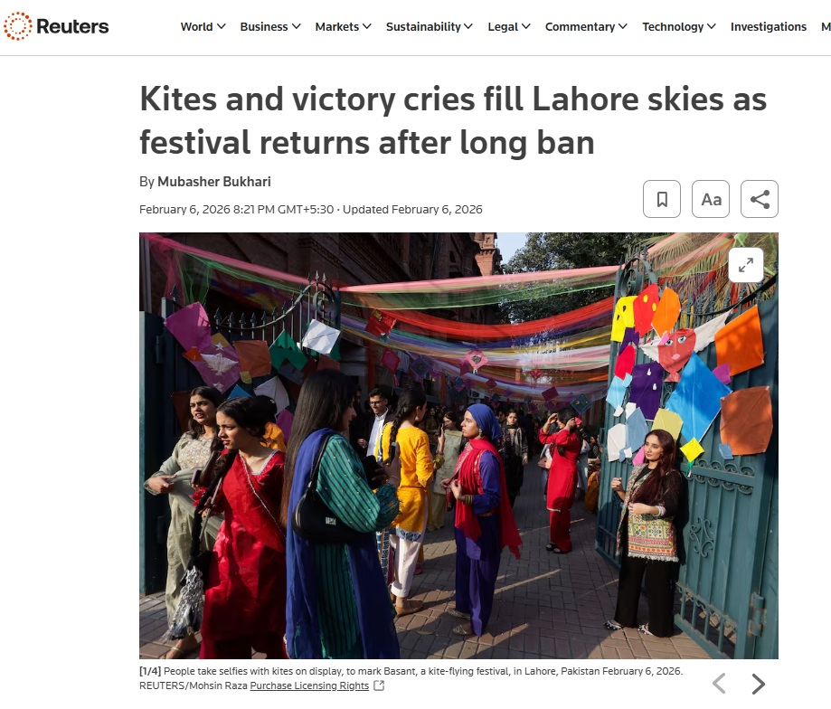 When Pakistan celebrated the lifting of an 18-year ban on the Basant festival kite festival in Lahore, Reuters’ tone was celebratory.