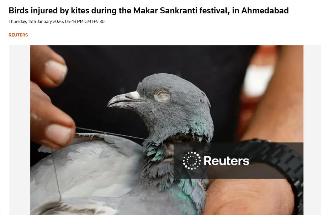 Instead, it read: “Birds injured by kites during the Makar Sankranti festival.”