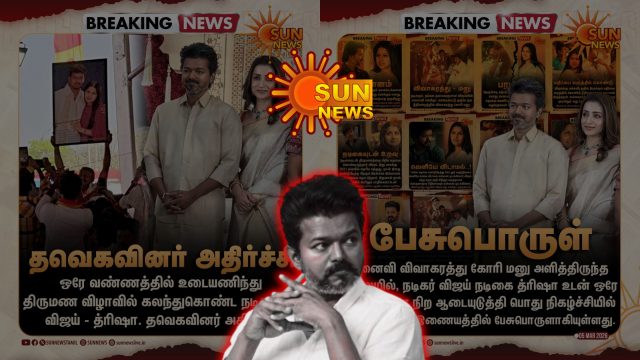 ஜோடியாக வந்து ஒன்றாக வாழ வாழ்த்திய விஜய் – த்ரிஷா#SunNews | #Vijay | #Trisha pic.twitter.com/oJCvDYmkzr