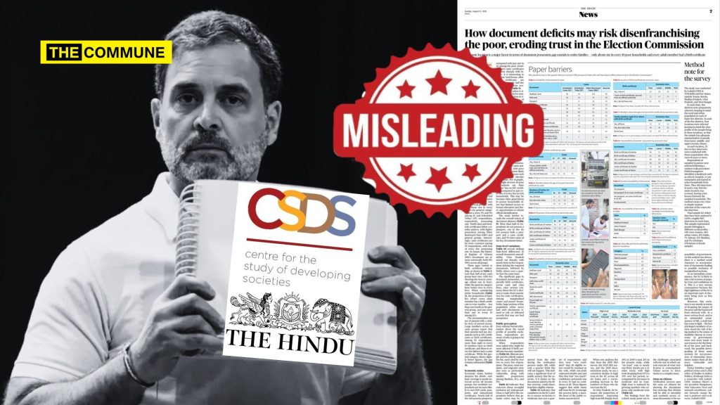 Even more damningly, The Hindu deliberately overlooked glaring contradictions in its own sourced data: while over 97% respondents in Assam and West Bengal reportedly have the necessary documentation for voting, 45% still fear “vote cutting.” This disparity was not investigated but instead presented uncritically as unquestioned truth.