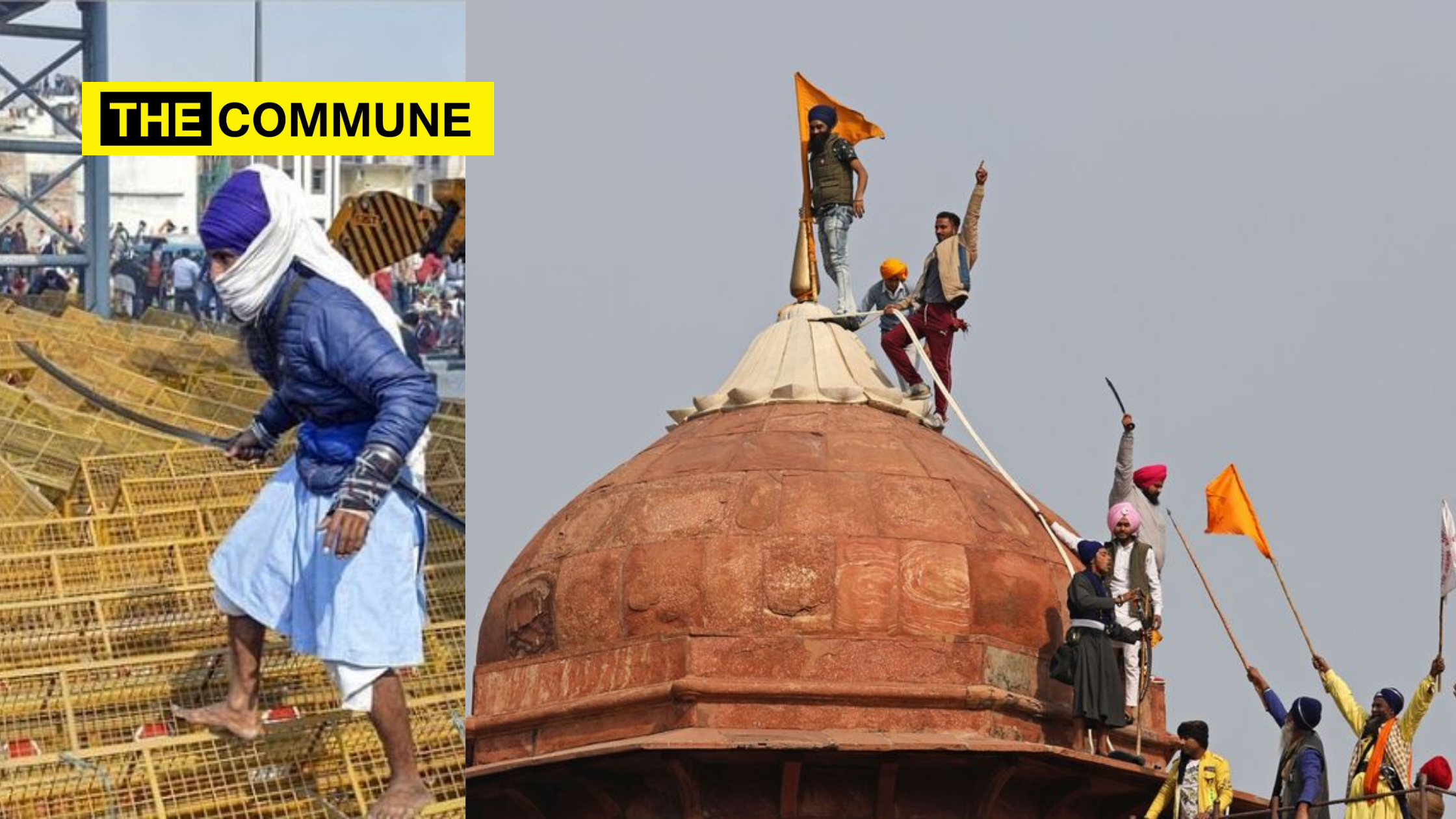 The tractor rally at the Red Fort | Image Credit: PTIRioting protestors gather in front of the Red Fort, in Delhi | Image Credits: ReutersNihangs (Sikh warriors) beat up a policeman at the Red Fort | Image Credits: ReutersMore agitators streaming in to the Red Fort | Image Credits: News Now NationThe riotous mob at the Red Fort, Delhi | Image Credits: TwitterAgitators install Sikh flags on top of a dome of the Red Fort | Image Credits: BloombergQuintRioters wave flags and brandish swords at Delhi’s Red Fort complex | Image Credits: TwitterA rioter on top of a flag pole hoisting a Sikh flag after removing the Indian tricolour | Image Credits; BloombergQuintRioters at the Red Fort removed the tricolour and hoisted a Khalistani flag | Image Credits: ANIRioters installing Sikh and Khalistani flags on top of a dome of a dome at the Red Fort | Image Credits: ANI