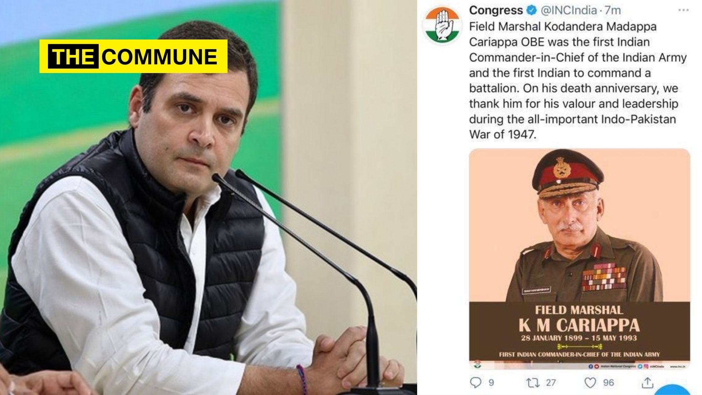 In another embarrassment for the Indian National Congress, the party through its official Twitter handle had tweeted a picture of General Sam Maneckshaw instead of General Cariappa’s on the occasion of the latter’s death anniversary.