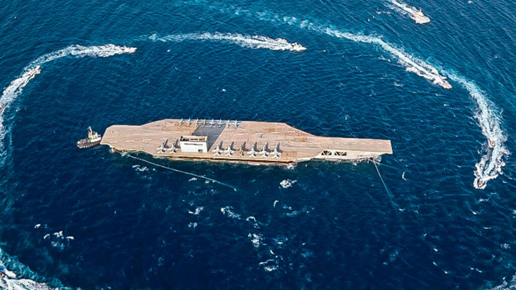 For the exercise, Iran used a dummy which resembles a carrier the US routinely sails into the Gulf. The fake aircraft carrier also had dummy fighter jets onboard and then it was targeted by missiles launched from a variety of angles, including some aimed at the carrier.