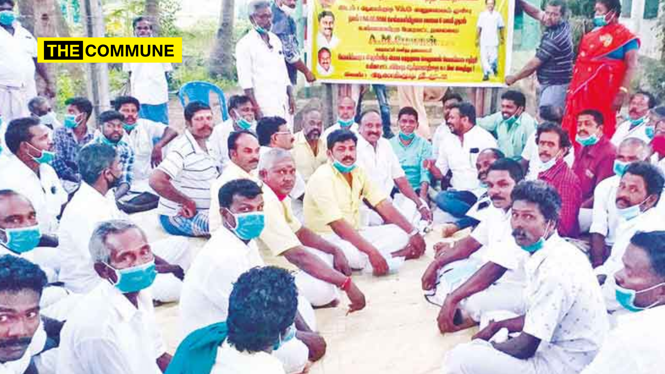 Upon coming to know of this, Alangudi panchayat leader Mohan, a DMK man, rushed to the area and went on a hunger strike at the Alangudi village administration office premises demanding immediate action by the Revenue Department and the HR&CE Department to stop the construction of the wall. The DMK cadres tooo joined in to protest. DMK Union Secretary of the area Dakshinamoorthy, DMK Union Deputy Secreataries Gnanasekaran and Gopal and a few from the party’s youth wing participated in the protest. Officials then promised to hold talks and take appropriate action.