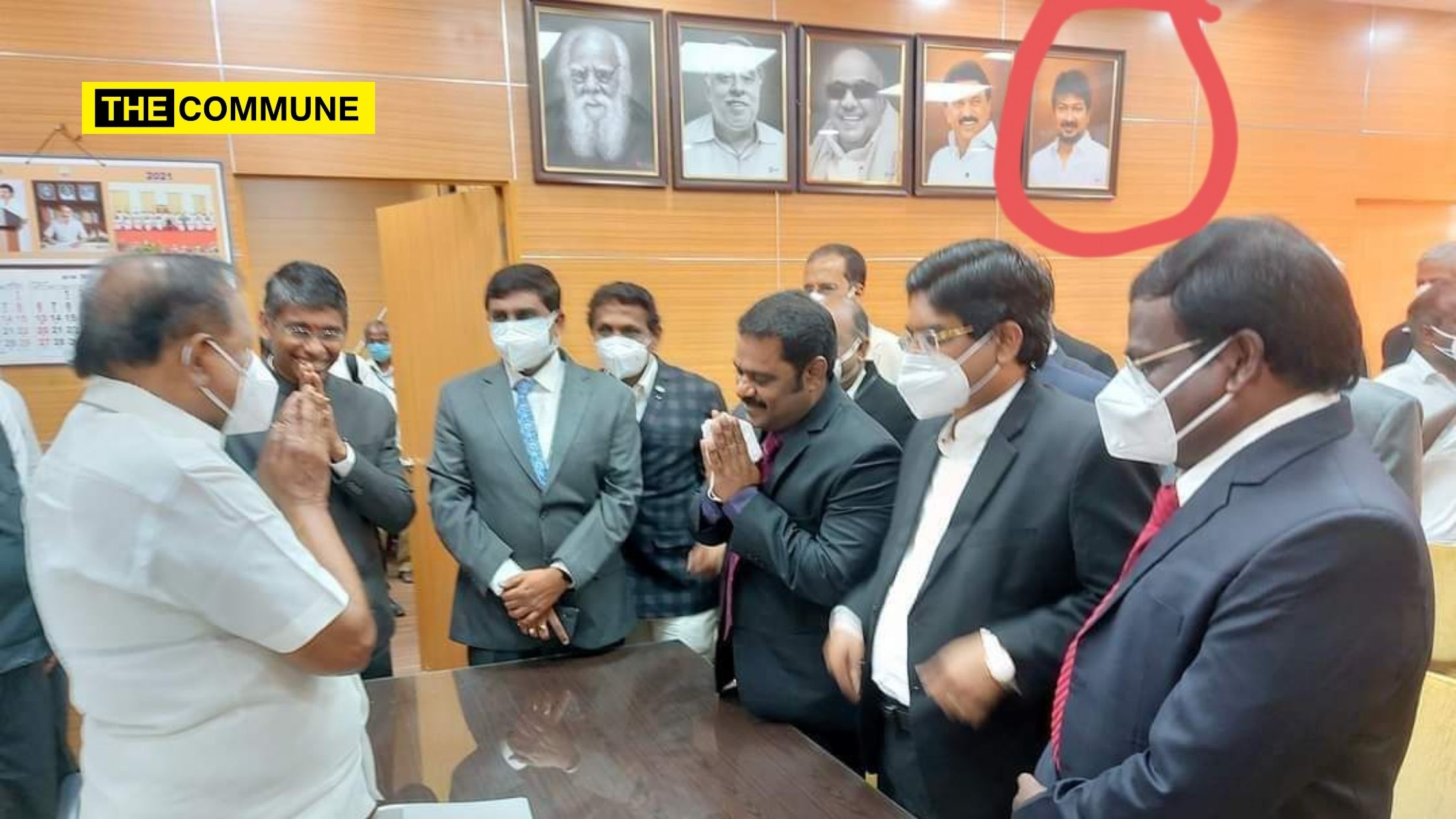 The DMK is once again being called out for its blatant dynastic politics and rightly so, as portraits of Udhayanidhi Stalin have been found adorning the walls along with pictures of his father MK Stalin, late DMK patriarch Karunanidhi, CN Annadurai, and E.V. Ramaswamy Naicker.