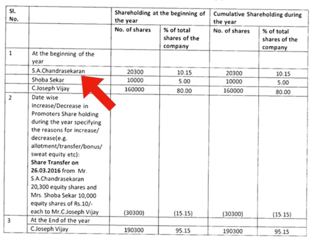Records from earlier years suggest this is not the first time key family members have been removed from Vijay-linked companies. In the five-year period preceding the last election, both Vijay’s father, director S.A. Chandrasekhar, and mother Shoba Sekhar were listed as partners in the same corporate structure.