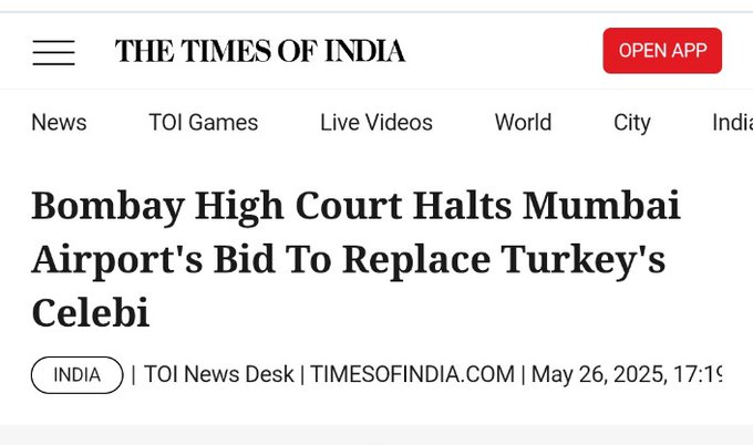 In May 2025, Bombay High Court issued a temporary injunction preventing Mumbai International Airport Ltd (MIAL) from finalizing bids to replace Celebi Airport Services India Pvt Ltd, the Indian arm of a Turkey-based company, for ground and bridge handling services.