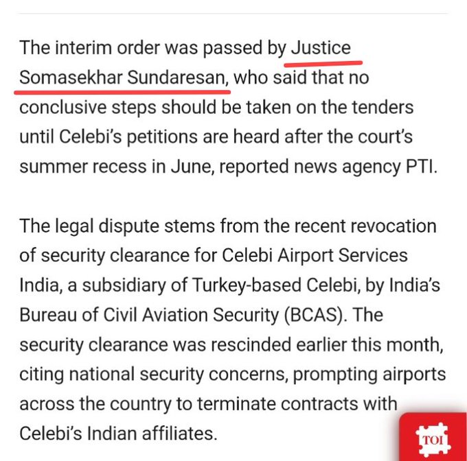 This decision came after the Bureau of Civil Aviation Security revoked Celebi’s security clearance, citing national security concerns due to Turkey’s support for Pakistan during recent hostilities.