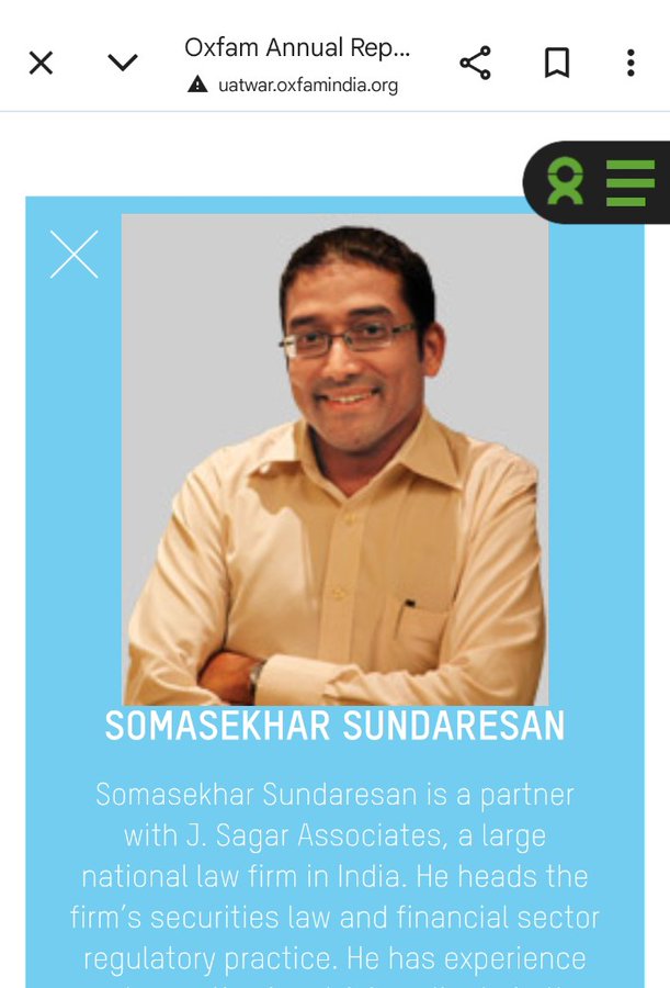 But what’s more concerning is his long-standing association with Oxfam India, a British-linked NGO. Sundaresan served on Oxfam India’s Board—a role often considered the strategic brain of any NGO, deeply involved in decision-making. This connection demands scrutiny given Oxfam’s controversial track record and ongoing investigations into FCRA violations and alleged foreign influence operations.