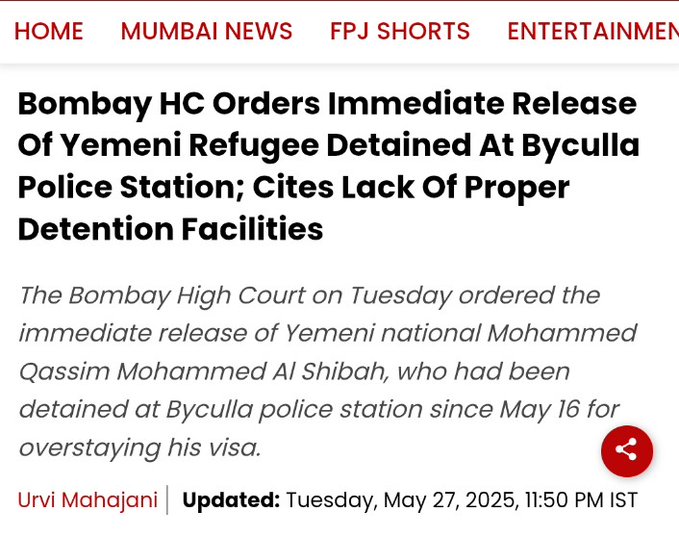 In another case, the Bombay High Court ordered the release of Mohammed Qassim Mohammed Al-Shibah, a Yemeni national claiming UNHCR refugee status, who had been detained at a police station since May 16 without due process. The court found the detention irregular and emphasized that fundamental rights to equality and life apply to all individuals, including non-citizens.