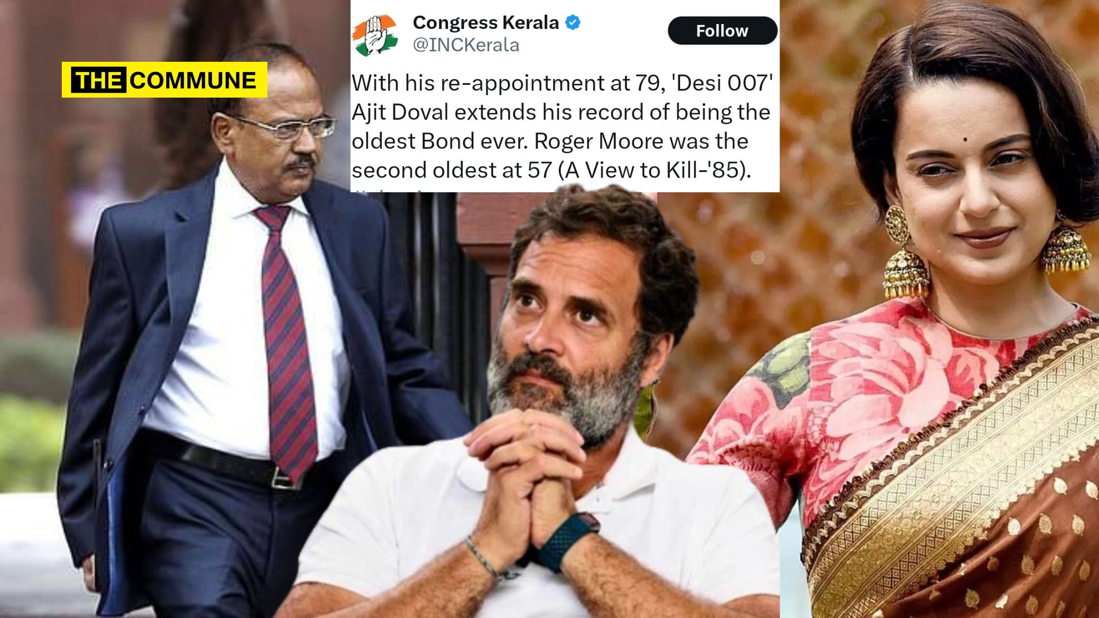 The Indian National Congress (INC) has a history of criticizing the BJP as part of its democratic duty, but this time the Kerala unit of the Congress crossed a line by making a shameful comparison. They recently compared the re-appointment of National Security Advisor (NSA) Ajit Doval to James Bond’s character, known for his womanizing tendencies. They dubbed Doval as ‘Desi 007’. This derogatory comparison, accompanied by a picture of actress and Member of Parliament Kangana Ranaut, has been widely condemned. Netizens expressed strong disapproval, leading to the deletion of the Kerala Congress’s post.