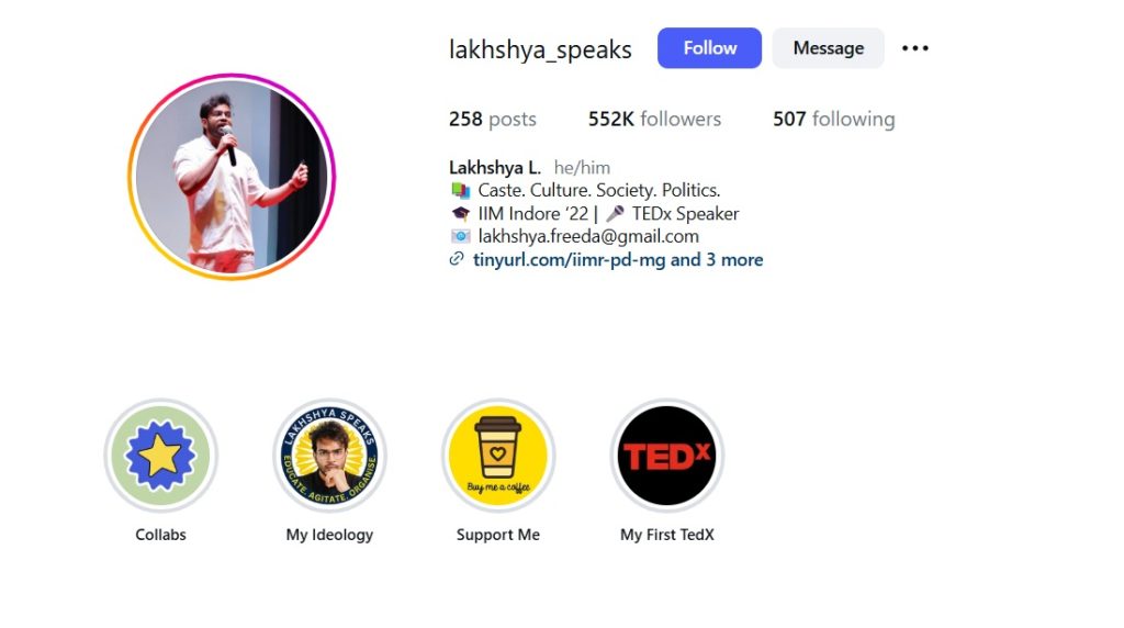 He presents himself as an “anti-caste educator,” a TEDx speaker, and an IIM Indore graduate with a ‘mission to reform society’.