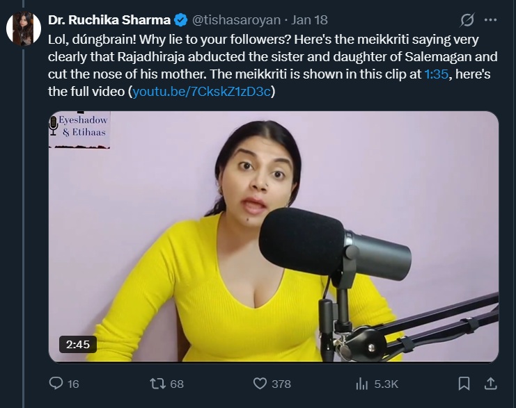 What this episode ultimately exposes is not a disagreement over history, but a collapse of intellectual and moral consistency. Ruchika Sharma demanded absolute deference to her claims in the name of women’s suffering, while openly admitting that she herself chose silence when speaking out threatened a preferred political narrative. She treated disagreement as violence, scholarship as misogyny, and correction as communal conspiracy.