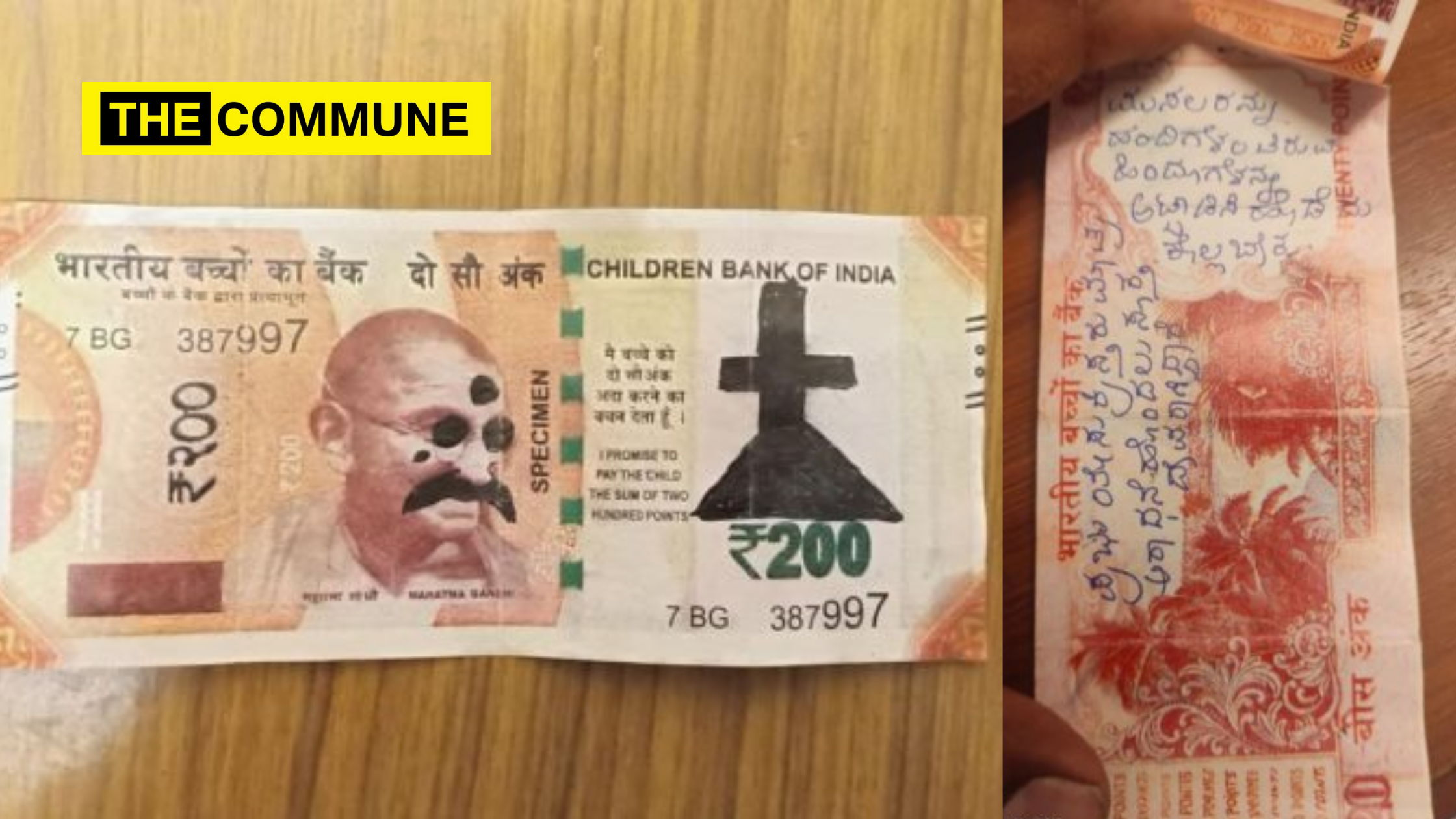 Pictures of the fake currency notes were shared on social media by concerned citizens. One ₹200 fake currency note had a crucifix scribbled on it and the face of Mahatma Gandhi on the note was disfigured. Another ₹20 fake currency note had a hateful message scribbled on it in Kannada. “Muslims and pig-like Hindus should be beaten up and killed. Lord Jesus Christ is the only God worthy of worship”, the message read.