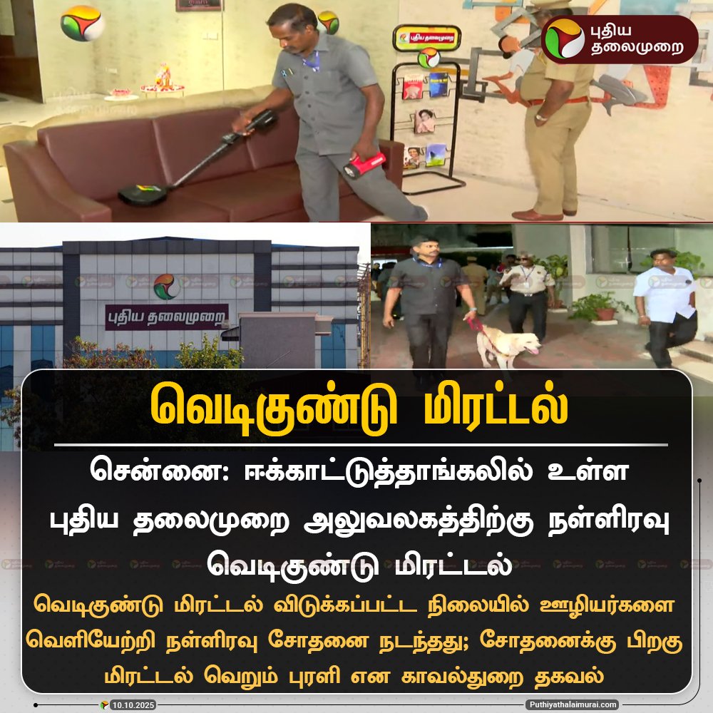 Puthiya Thalaimurai office which had recently covered the TVK Karur stampede questioning the efficacy of the DMK government has also received bomb threat.