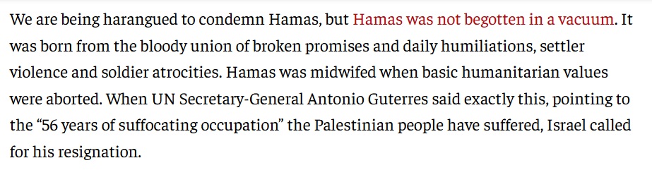 Her conclusion was the most revealing sentence of all: “We are being harangued to condemn Hamas, but Hamas was not begotten in a vacuum.” Hamas, in Roy’s framing, was not a terrorist organisation that had just murdered 1,400 civilians. It was a grievance given form. A response. Understandable, if not justified.