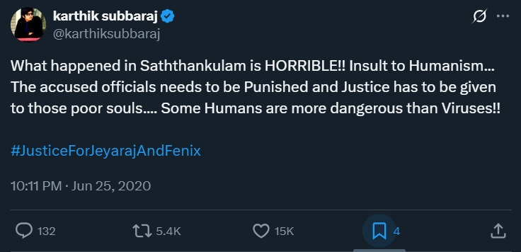 Let us also take a look at the personal opinions and who he sides with. Did you know that Karthik Subbaraj is a known sympathizer of LTTE and Naxals like Daniel/Thirumurugan Gandhi?