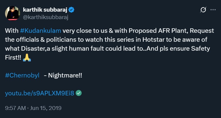 He did the same for the Kudankulam nuclear power plant! He wanted politicians to watch the documentary on Chernobyl and use it as a reason to stop the nuclear power plant in TN. Was he so naive that people were not aware of why Chernobyl happened?