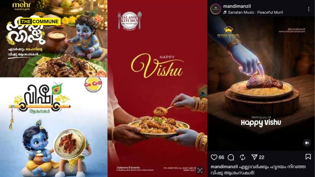 Across these businesses, Vishu-themed advertisements have drawn sharp reactions for placing a revered Hindu deity in close visual association with meat-based food items.