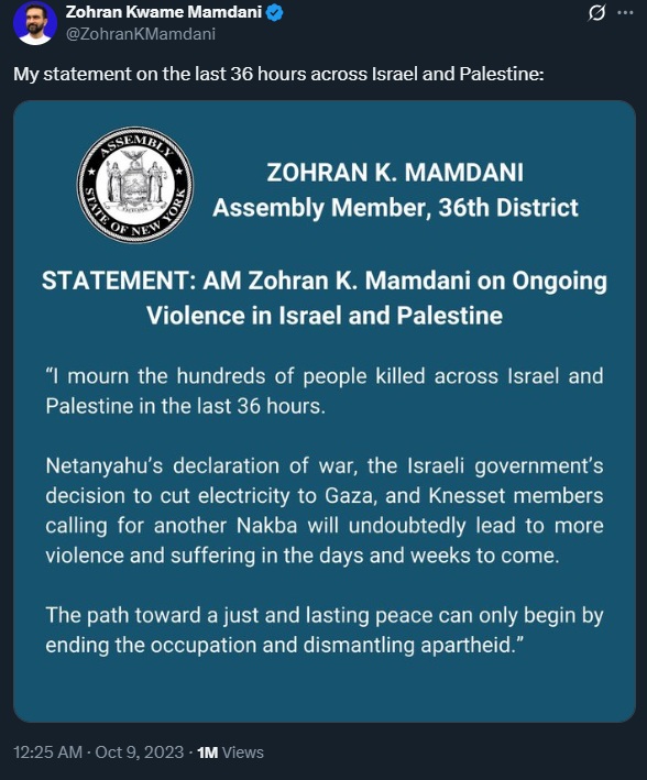 His allies include Julia Salazar (BDS activist), Jabari Brisport (self-declared Marxist), and Rashida Tlaib (Hamas sympathizer).