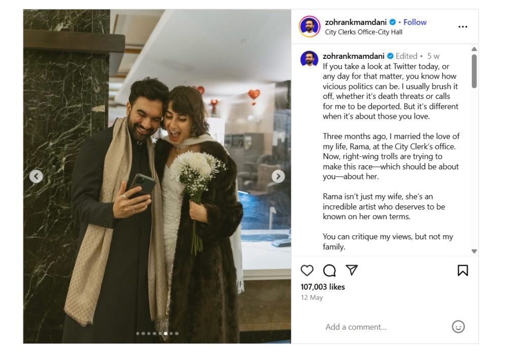 The couple’s ideological alignment is rooted in radical leftist politics, anti-Israel sentiment, and identity-based activism. She is part of his ideological machine, blending Islamic extremism with socialist revolution. Duwaji’s artwork reportedly supports the Palestinian cause, including Hamas-linked narratives, amplifying Mamdani’s political agenda. Their lavish Dubai wedding, despite Mamdani’s socialist platform, exposed his hypocrisy on “class struggle.”