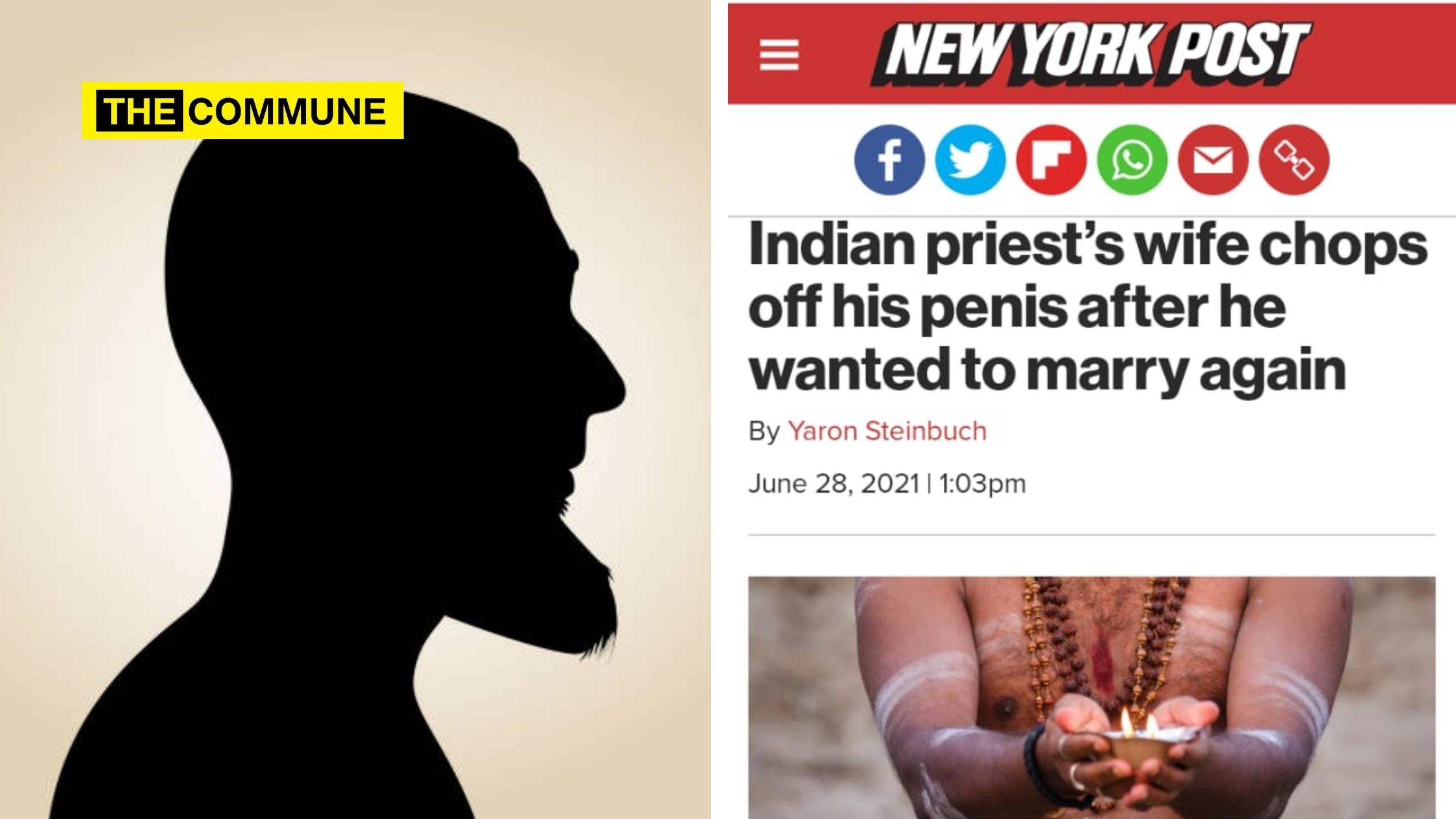 The New York Post has published a news item that can not only be called callous and irresponsible but also a clear case of Hinduphobia after it used the of a Hindu Sadhu holding a Diya with the headline “Indian priest’s wife chops off his penis after he wanted to marry again” for a story involving a Muslim man and his wife.