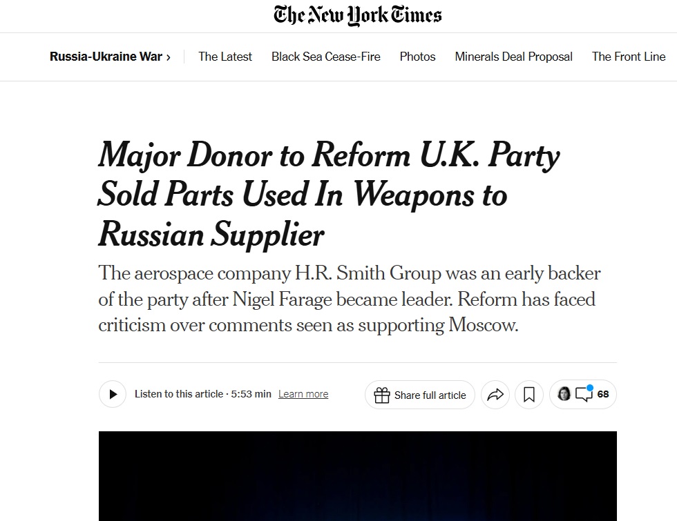 While the report acknowledged that there was no direct evidence proving H.R. Smith’s products were sent to Russia, it cited shipment records indicating that HAL had received parts from the British manufacturer and, within days, exported components with the same product codes to Russia.
