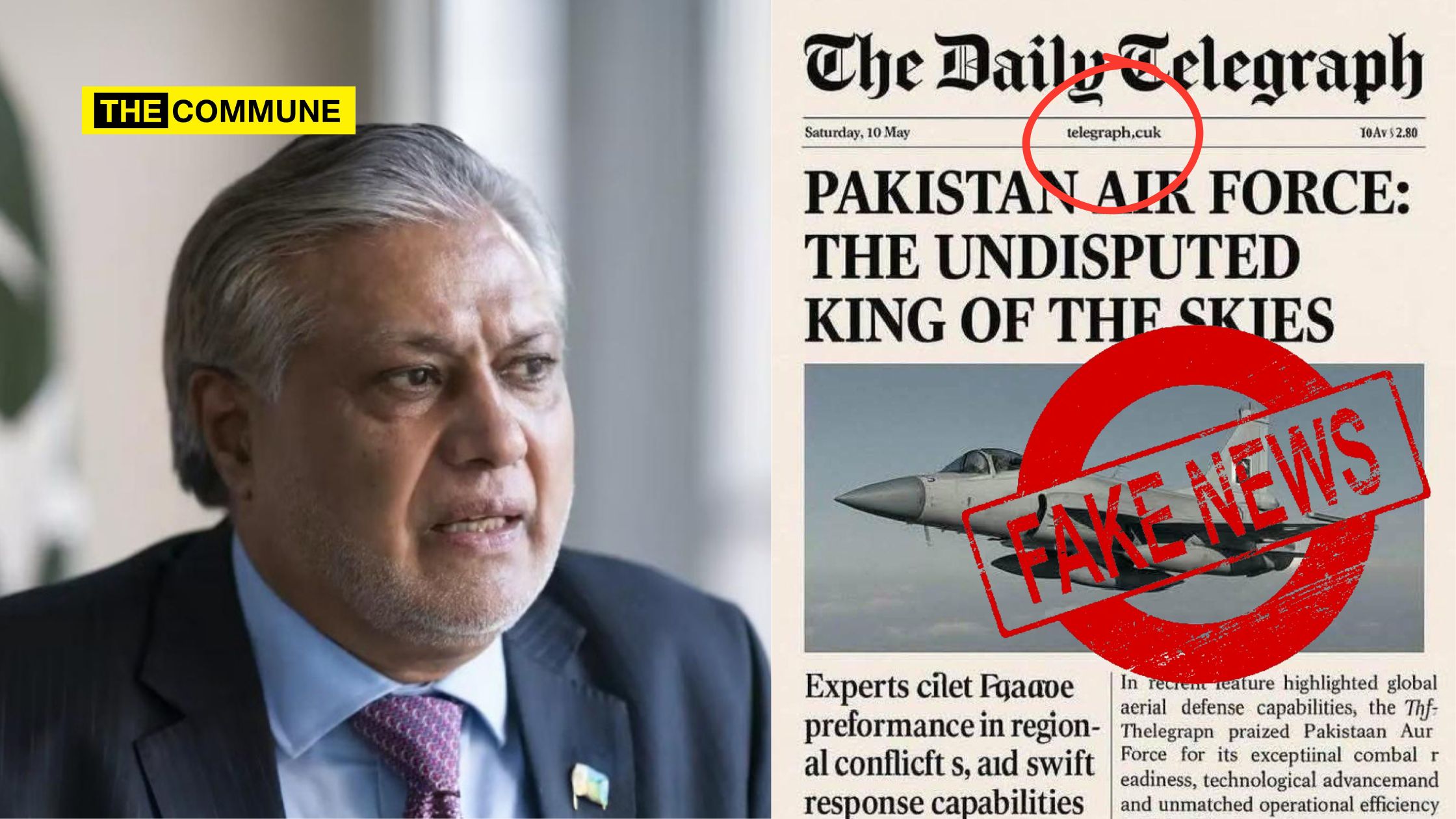 In an address to the Senate, Pakistan’s Deputy Prime Minister and Foreign Minister Ishaq Dar cited what he believed was praise from the UK-based The Daily Telegraph, claiming the paper had described the Pakistan Air Force (PAF) as the “undisputed king of the skies.” However, the page he quoted from turned out to be fake AI picture widely circulated on social media.