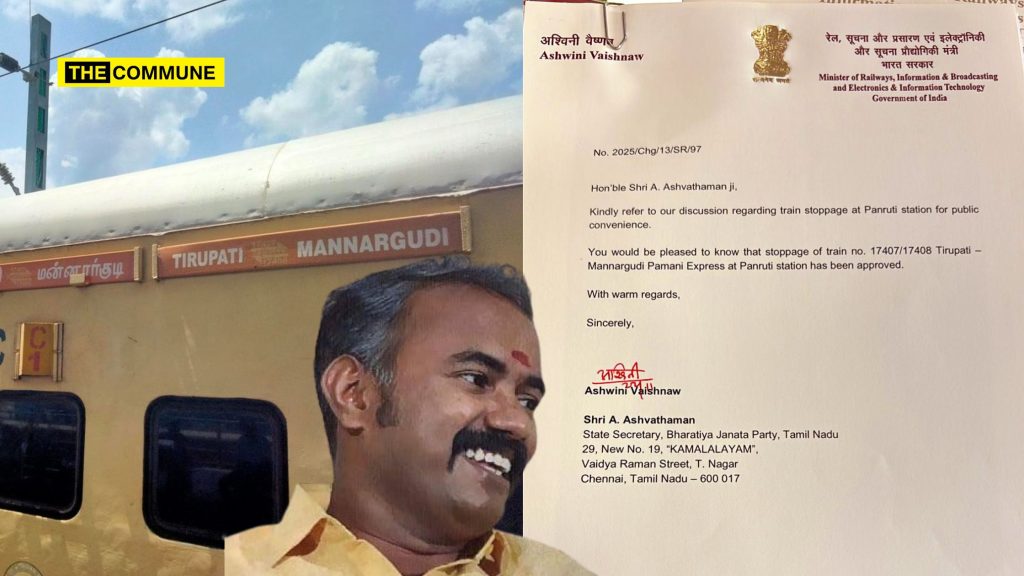 The approval was formally communicated via a letter from Union Minister Ashwini Vaishnaw to Ashvathaman. “Kindly refer to our discussion regarding train stoppage at Panruti station for public convenience. You would be pleased to know that stoppage of train no. 17407/17408 Tirupati – Mannargudi Pamani Express at Panruti station has been approved,” the minister’s letter stated.