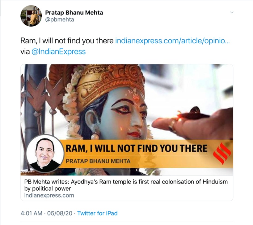 Mehta has repeatedly drawn backlash for his columns, including his reaction to the Ram Temple inauguration, in which he wrote that Ayodhya’s Ram Mandir was the “first colonisation of Hinduism by political power.”