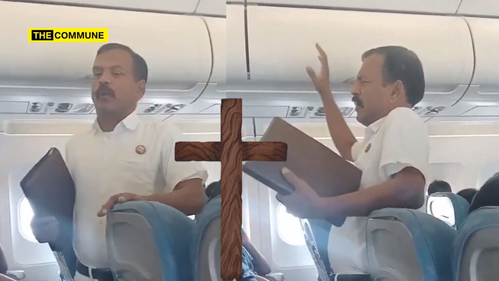 A video widely circulated on social media has sparked debate after a Christian preacher openly proselytized inside a Chennai-Tuticorin flight on 27 January 2025. The incident has drawn criticism, with many questioning selective outrage over religious expressions in public spaces, particularly in Tamil Nadu’s socio-political context.