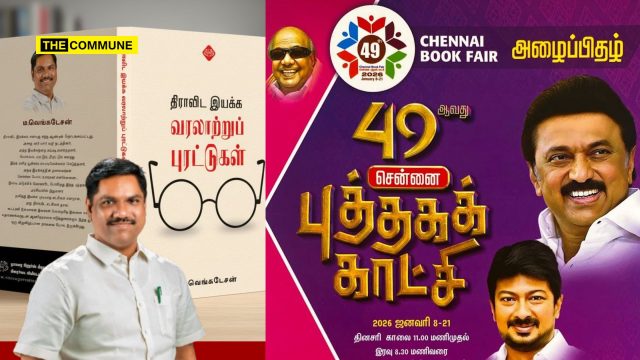 The 49th Chennai Book Fair has begun. And not without controversy. This year, writer Ma Venkatesan’s book ‘Historical Distortions of the Dravidian Movement (‘திராவிட இயக்க வரலாற்றுப் புரட்டுகள்’), has been released and is on display and sale at the book fair.