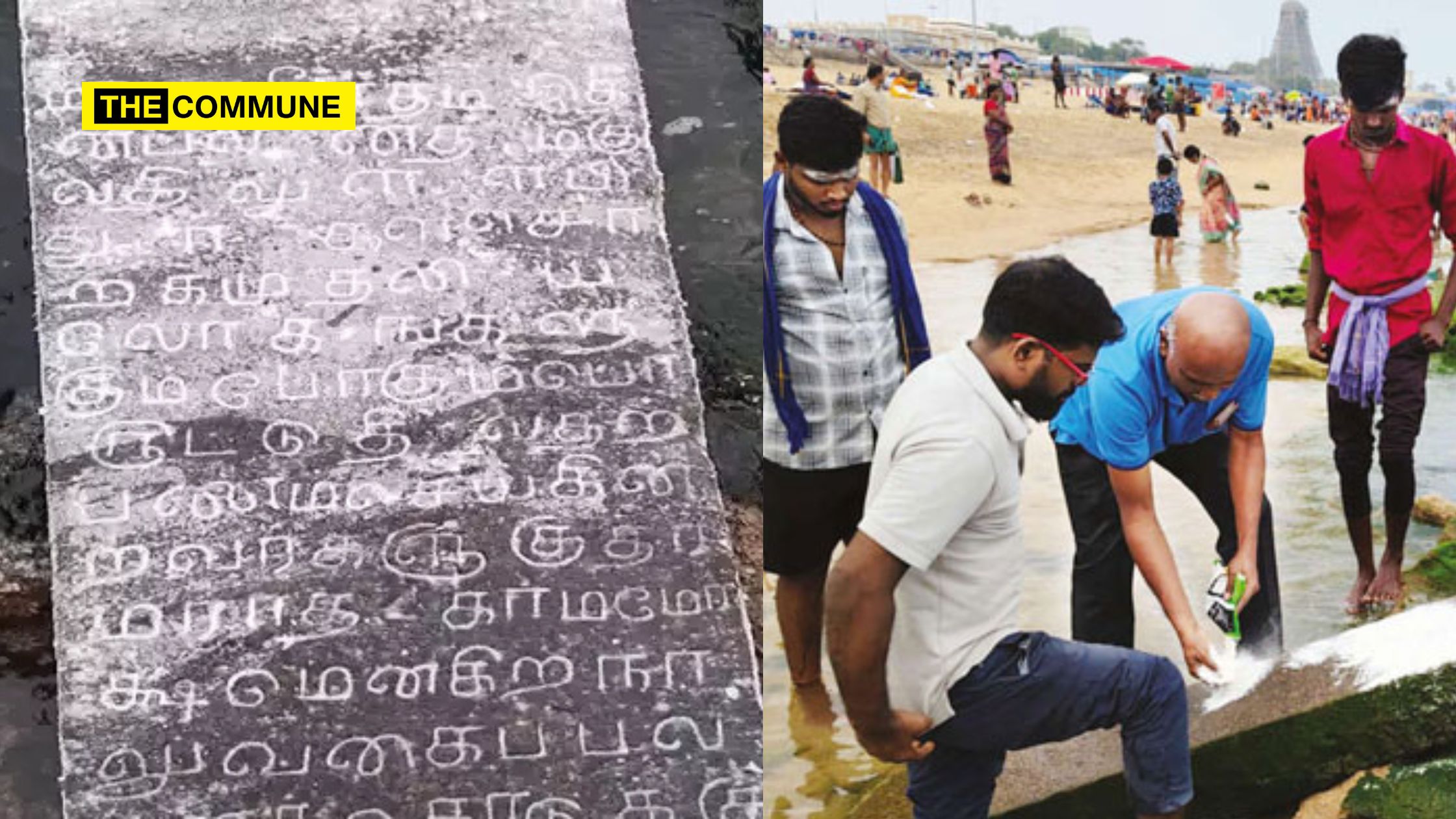 Since, 27 November, as Cyclone Fengal intensified over the southwest Bay of Bengal, the seawater along Tiruchendur beach receded, revealing large inscriptions alongside algae-covered rocks. Devotees quickly moved the inscription to a rock for better visibility.