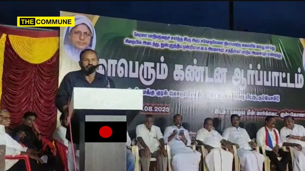 A Hindu organisation has filed a petition against the Dravidar Kazhagam functionary, Ramesh, who referred Hindus as “sons of prostitutes” during a Christian gathering in Kumbakonam on 4 August 2025. The event was organised to protest the arrest of Catholic missionaries in Chhattisgarh over allegations of forced conversions among tribal communities.