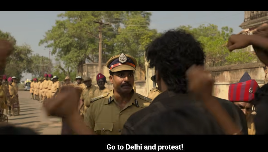 There is a scene in the utter flop film Parasakthi where a police officer tells protesting students “If you have a problem with government, go to Delhi and protest.” to which Atharvaa yells back “Delhi than India va?” (Is only Delhi part of India?).