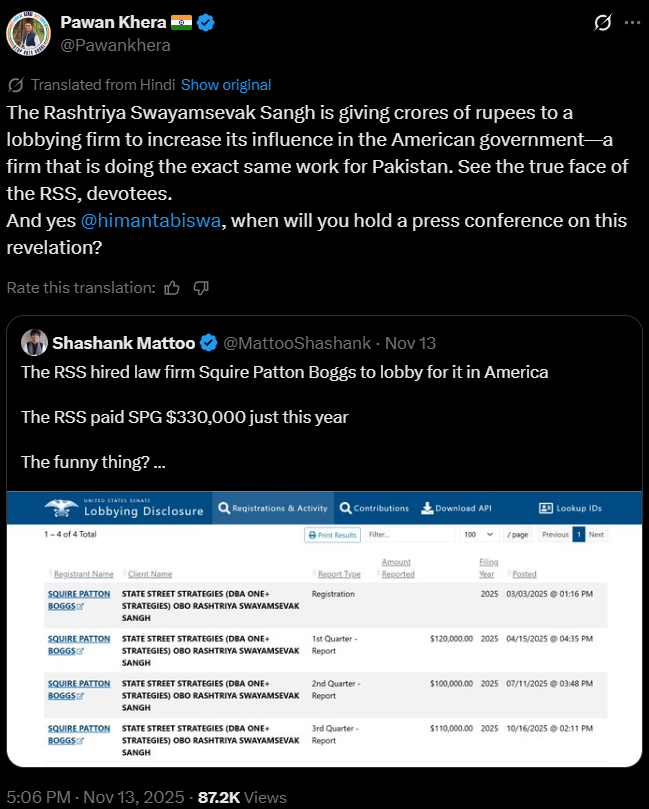 Remember how certain media houses and journalists reported about RSS engaging a lobby firm in the US?