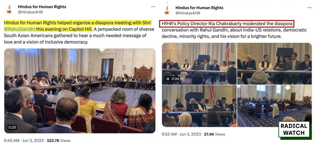 Rahul Gandhi’s 2023 U.S. tour was reportedly coordinated in part by IAMC-affiliated groups.