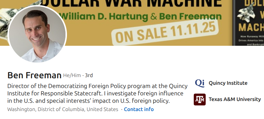 Ben Freeman, Director at the Quincy Institute, is one of the main voices in the campaign.