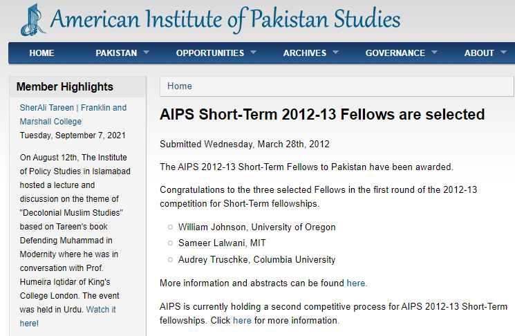Audrey Truschke, a historian at Rutgers University, has ties to the American Institute of Pakistan Studies.