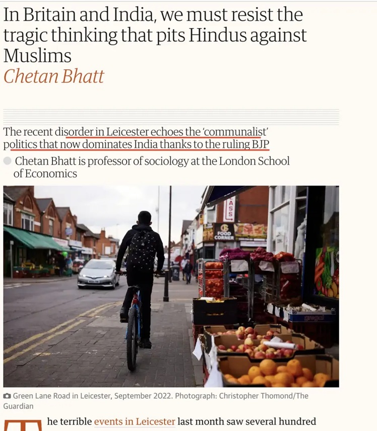 Chetan Bhatt has written articles blaming Hindus for the Leicester violence and equating the RSS with Islamist groups.