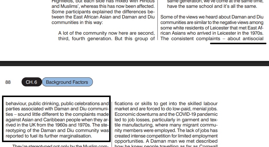 The SOAS inquiry dedicates significant space to portraying the Hindu community from Daman and Diu as central actors in the unrest. It notes that they were blamed for antisocial behaviour, unregulated religious celebrations, a culture of drinking, and harassment and provocations outside mosques, a framing that adopts the accusers’ perspective without sufficient scrutiny.
