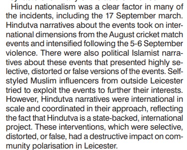The SOAS report stands in stark contrast to a November 2022 report by the Henry Jackson Society (HJS), which found no evidence of Hindu extremism in Leicester and concluded that the riots were instigated by Islamist misinformation.