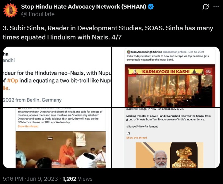 Subir Sinha has previously equated Hindutva with Nazism.