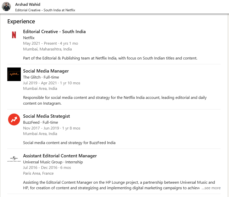 According to his LinkedIn profile, he had earlier worked with Buzzfeed, an American news and entertainment digital media company.