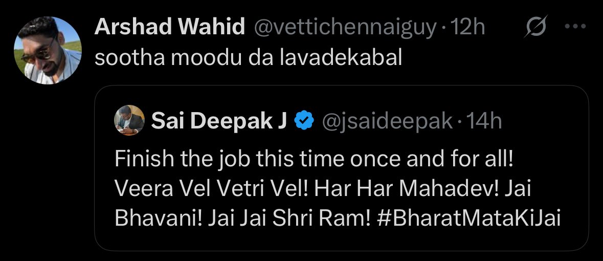 Wahid responded with vulgar abuse in Tamil, saying, “s**tha m**du da l*v*dek*b*l,” reflecting the hostility often shown by those sympathetic to anti-India elements.
