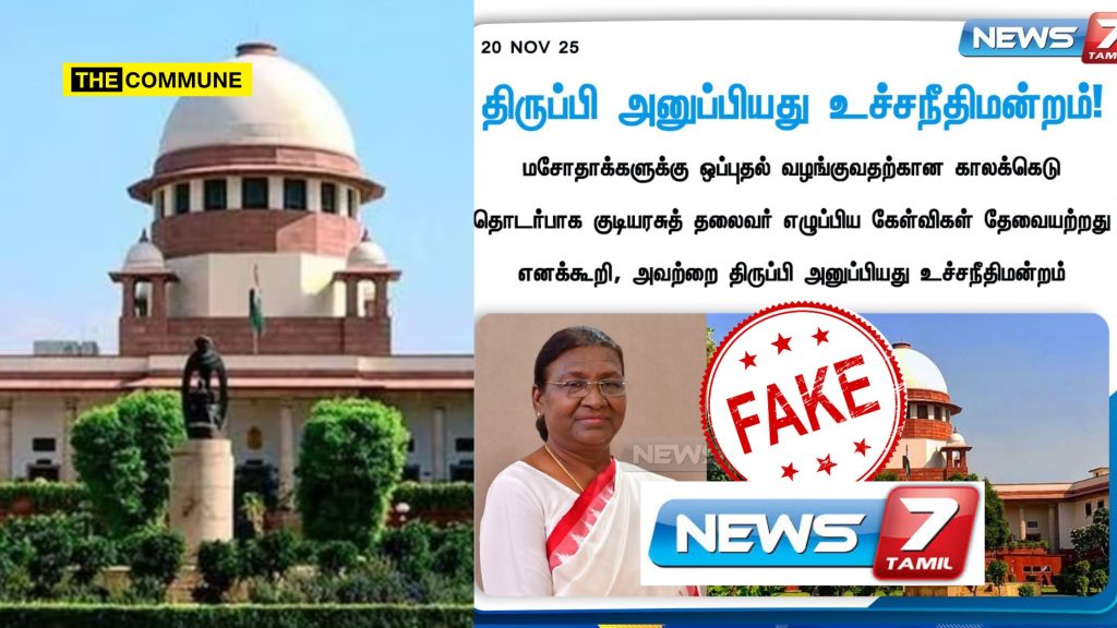 However, even as the ruling became public, News7 Tamil published a completely false interpretation of the verdict, claiming the Supreme Court had “returned” the questions and dismissed the reference – the precise opposite of what the Bench actually held.