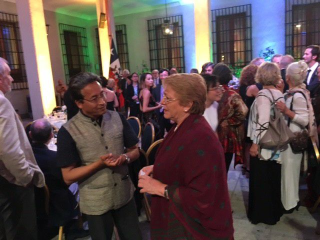 In January 2018, Wangchuk met former Chilean President Michelle Bachelet in Santiago. While posting a photo from the event, he made a controversial comparison, noting that a stronger earthquake in Chile killed far fewer people than a weaker one in Haiti, attributing it to better preparedness.